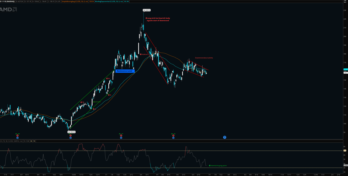 From the start of November 2023, AMD has been in a strong uptrend, consistently making HHs and HLs