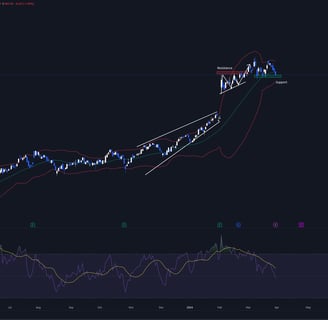 Because of the support level and BB + RSI indicators, the price will likely bounce back up in the short term. This could be a potential buying point.