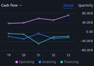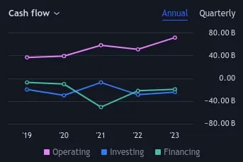Meta's cash flow statement indicates a notable increase in net cash from operating activities, showcasing improved efficiency and profitability in core business operations. However, shifts in investment priorities are evident, with decreased spending in some areas but a substantial increase in cash and cash equivalents, highlighting both stability and potential conservatism in spending.