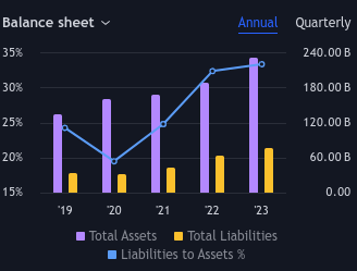 Interpretation: Implies that the company is not effectively leveraging its assets to drive sales and profitability. However, the industry average is 0.41 which Meta has a competitive advantage over others.