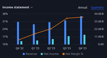 Interpretation: Reflects a high level of profitability and demonstrates that Meta is effectively utilizing shareholder equity to generate profits